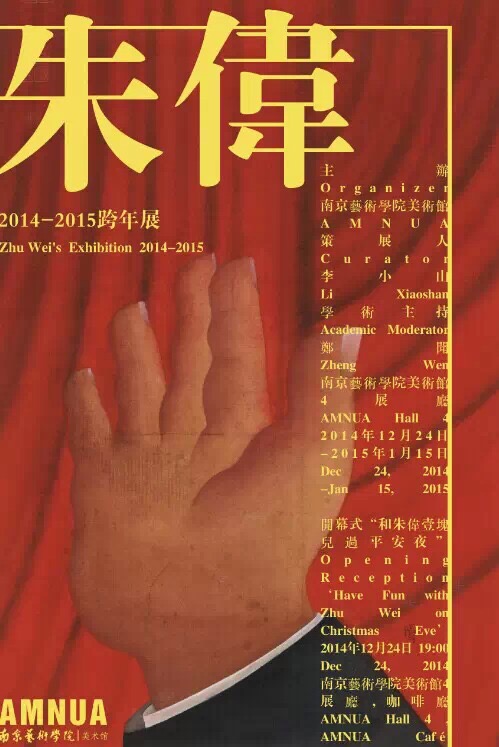 At 7 pm on December 24, 2014, the academic exhibition Zhu Wei's Exhibition 2014 - 2015 and the museum's Christmas Eve ceremony will be opened at the Art Museum of Nanjing University of the Art (AMNUA), Nanjing. The opening reception "Have Fun with Zhu Wei on Christmas Eve" was organized by the museum. The event planner Zheng Wen said: "AMNUA seleted the solo exhibition of world famous artist Zhu Wei who's known for his contemporary Chinese meticulous paintings as the Christmas Eve exhibition, is to celebrate the Western festival in an Eastern way." In addition to artist Zhu Wei and AMNUA chief curator Li Xiaoshan, the museum also invited many well-known artists, musicians, gourmets, curators, collectors, and medias to the event. On the opening night the documentary film Hidden Clues: Zhu Wei will be shown in the museum's cafe. 2014年12月24日19:00整,朱伟2014—2015跨年学术展开幕式暨南艺美术馆平安夜派对将拉开帷幕。本次开幕活动“和朱伟一块儿过平安夜“由南京艺术学院美术馆主办,活动策划人郑闻认为:美术馆选择以当代工笔闻名海外的艺术家朱伟个展作为南艺美术馆跨年之作,是“以东方的方式庆祝世界的节日。”除艺术家朱伟和南艺美术馆馆长李小山,南艺美术馆还邀请诸多知名艺术家、音乐人、美食家、策展人、收藏家、媒体人等参加此次盛会。当晚将于美术馆咖啡厅放映纪录片《隐秘的线索:朱伟》。